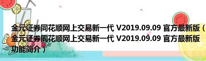 金元证券同花顺网上交易新一代 V2019.09.09 官方最新版(金元证券同花顺网上交易新一代 V2019.09.09 官方最新版功能简介)