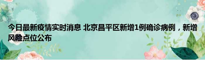 今日最新疫情实时消息 北京昌平区新增1例确诊病例,新增风险点位公布