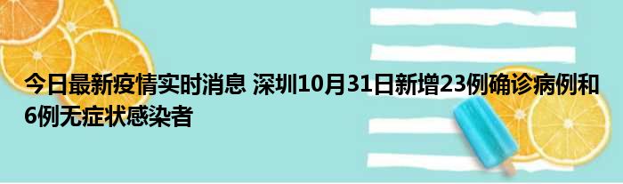 据深圳卫健委,10月31日0-24时,深圳新增23例新冠肺炎确诊病例和6例新冠病毒无症状感染者