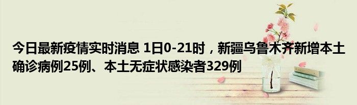 今日最新疫情实时消息 1日0-21时,新疆乌鲁木齐新增本土确诊病例25例、本土无症状感染者329例