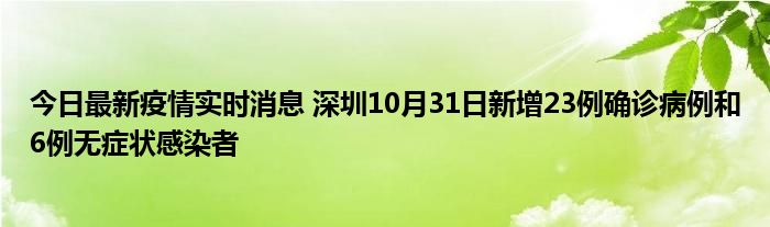 据深圳卫健委,10月31日0-24时,深圳新增23例新冠肺炎确诊病例和6例新冠病毒无症状感染者