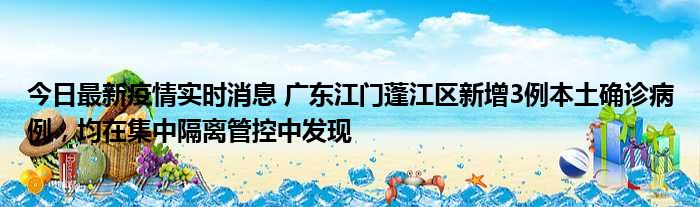 今日最新疫情实时消息 广东江门蓬江区新增3例本土确诊病例,均在集中隔离管控中发现