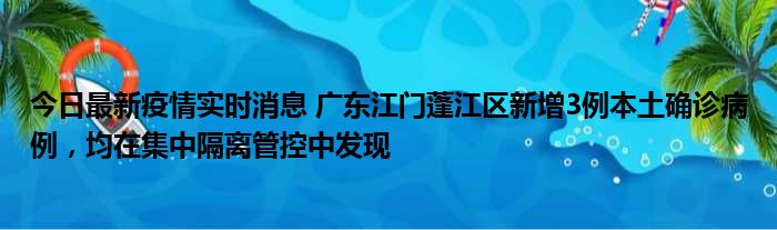 今日最新疫情实时消息 广东江门蓬江区新增3例本土确诊病例,均在集中隔离管控中发现