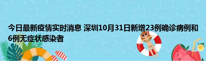 据深圳卫健委,10月31日0-24时,深圳新增23例新冠肺炎确诊病例和6例新冠病毒无症状感染者
