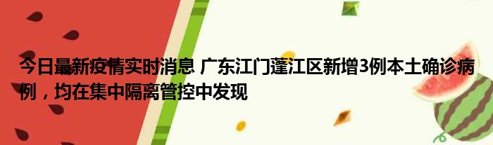 今日最新疫情实时消息 广东江门蓬江区新增3例本土确诊病例,均在集中隔离管控中发现