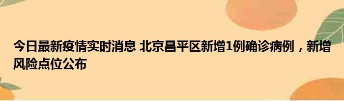 今日最新疫情实时消息 北京昌平区新增1例确诊病例,新增风险点位公布