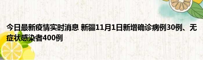 新疆卫健委通报,11月1日0时至24时,新疆维吾尔自治区新增确诊病例30例,新增无症状感染者400例,新增确诊病例治愈出院11例,新增无症状