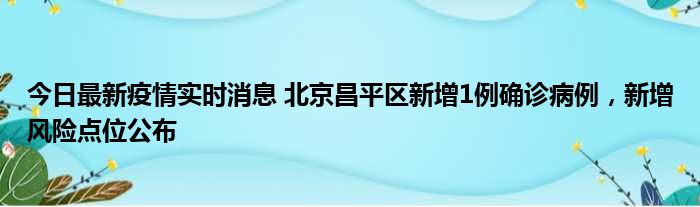 今日最新疫情实时消息 北京昌平区新增1例确诊病例,新增风险点位公布