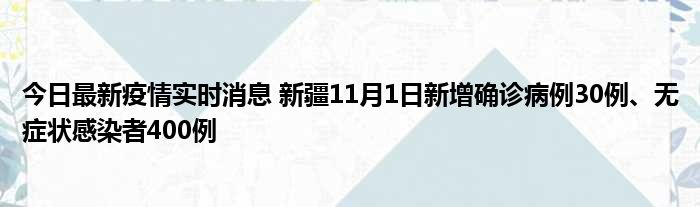 新疆卫健委通报,11月1日0时至24时,新疆维吾尔自治区新增确诊病例30例,新增无症状感染者400例,新增确诊病例治愈出院11例,新增无症状