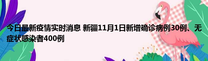 新疆卫健委通报,11月1日0时至24时,新疆维吾尔自治区新增确诊病例30例,新增无症状感染者400例,新增确诊病例治愈出院11例,新增无症状