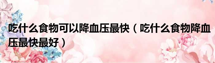 吃什么食物可以降血压最快(吃什么食物降血压最快最好)