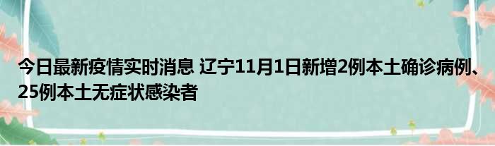辽宁卫健委通报,11月1日0-24时,辽宁省新增2例本土新冠肺炎确诊病例,分别为沈阳市和朝阳市报告;新增25例本土无症状感染者,其中沈阳市