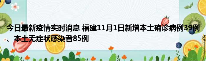 今日最新疫情实时消息 福建11月1日新增本土确诊病例39例、本土无症状感染者85例