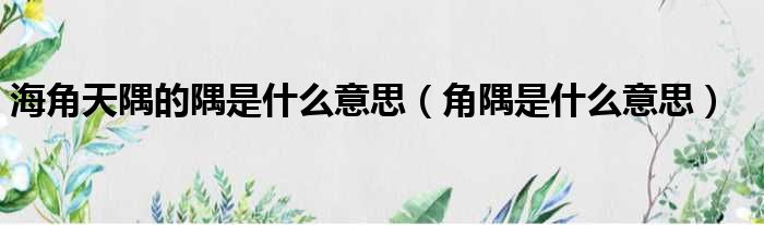 导读 大家好,今天小六子来为大家解答以下的问题,关于海角天隅的隅是什么意思,角隅是什么意思这个很多人还不知道,现在让我们一起来看看吧!1、