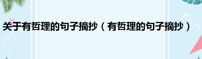 关于有哲理的句子摘抄(有哲理的句子摘抄)