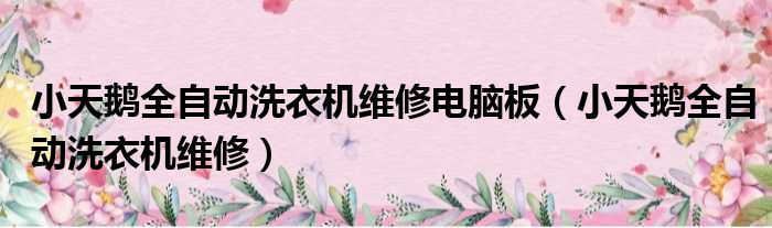 小天鹅全自动洗衣机维修电脑板(小天鹅全自动洗衣机维修)