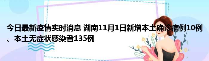 今日最新疫情实时消息 湖南11月1日新增本土确诊病例10例、本土无症状感染者135例