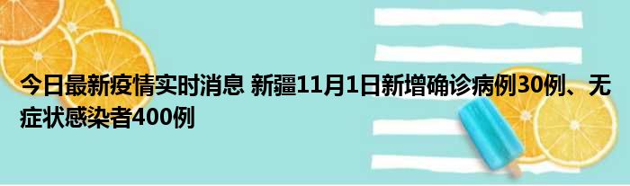 新疆卫健委通报,11月1日0时至24时,新疆维吾尔自治区新增确诊病例30例,新增无症状感染者400例,新增确诊病例治愈出院11例,新增无症状