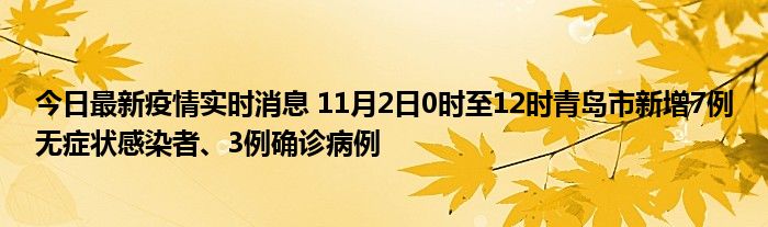 您的位置:首页 >动态频道 > 聚焦疫情 > 今日最新疫情实时消息 11月2日0时至12时青岛市新增7例无症状感染者、3例确诊病例 2022-11-03 20:18:15 • 来源: 导读 免责声明:本文由用户上传,如有侵权请联系删除! 上一篇:今日最新疫情实时消息 深圳11月1日新增18例确诊病例和5例无症状感染者,详情公布 下一篇:今日最新疫情实时消息 福建11月1日新增本土确诊病例39例、本土无症状感染者85例