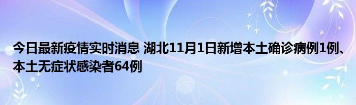 湖北卫健委通报,11月1日0-24时,全省新增本土确诊病例1例(为武汉市报告,轻型,重点人群筛查检出),新增本土无症状感染者64例(武汉市