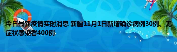 新疆卫健委通报,11月1日0时至24时,新疆维吾尔自治区新增确诊病例30例,新增无症状感染者400例,新增确诊病例治愈出院11例,新增无症状