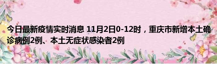 今日最新疫情实时消息 11月2日0-12时,重庆市新增本土确诊病例2例、本土无症状感染者2例