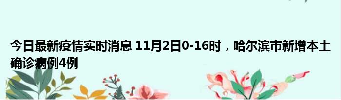 今日最新疫情实时消息 11月2日0-16时,哈尔滨市新增本土确诊病例4例