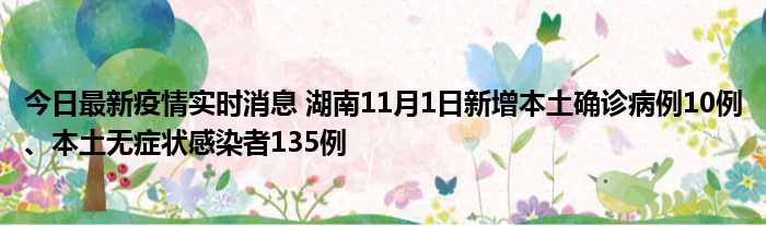 今日最新疫情实时消息 湖南11月1日新增本土确诊病例10例、本土无症状感染者135例