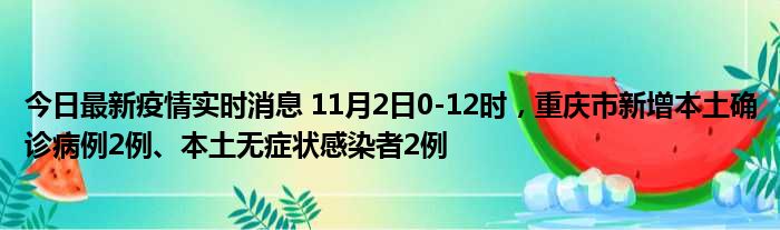 今日最新疫情实时消息 11月2日0-12时,重庆市新增本土确诊病例2例、本土无症状感染者2例