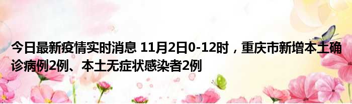 今日最新疫情实时消息 11月2日0-12时,重庆市新增本土确诊病例2例、本土无症状感染者2例
