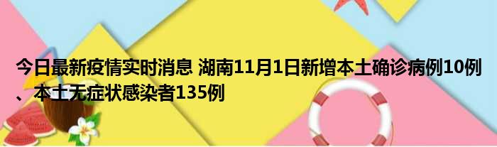 今日最新疫情实时消息 湖南11月1日新增本土确诊病例10例、本土无症状感染者135例