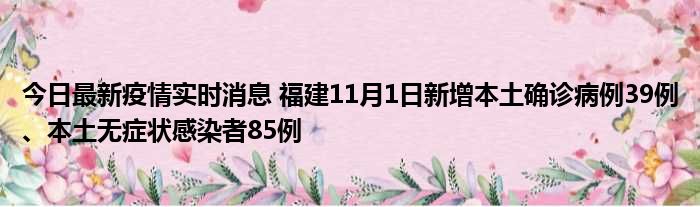今日最新疫情实时消息 福建11月1日新增本土确诊病例39例、本土无症状感染者85例