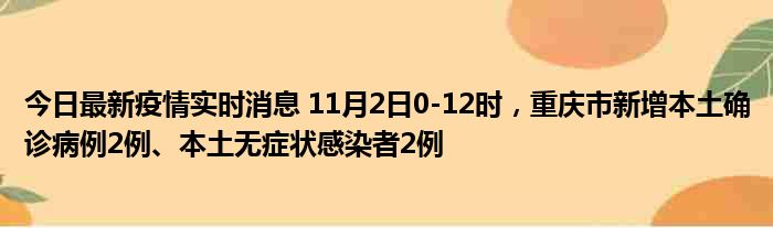 今日最新疫情实时消息 11月2日0-12时,重庆市新增本土确诊病例2例、本土无症状感染者2例