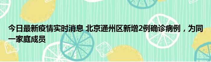今日最新疫情实时消息 北京通州区新增2例确诊病例,为同一家庭成员