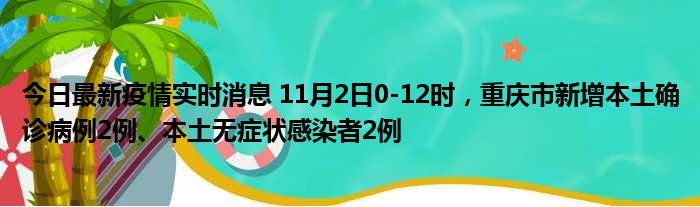 今日最新疫情实时消息 11月2日0-12时,重庆市新增本土确诊病例2例、本土无症状感染者2例
