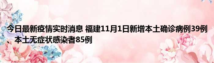 今日最新疫情实时消息 福建11月1日新增本土确诊病例39例、本土无症状感染者85例