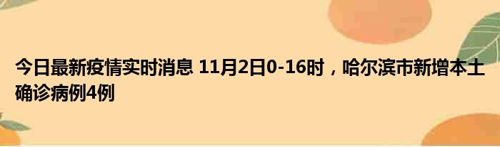 今日最新疫情实时消息 11月2日0-16时,哈尔滨市新增本土确诊病例4例