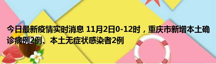 今日最新疫情实时消息 11月2日0-12时,重庆市新增本土确诊病例2例、本土无症状感染者2例