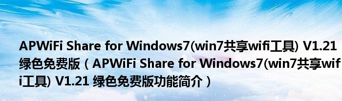 导读 大家好,关于APWiFi Share for Windows7(win7共享wifi工具) V1 21 绿色免费版,APWiFi Share for Windows7(win7共享wifi工具) V1 2