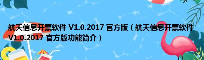 导读 大家好,关于航天信息开票软件 V1 0 2017 官方版,航天信息开票软件 V1 0 2017 官方版功能简介这个很多人还不知道,小勒来为大家解答以上