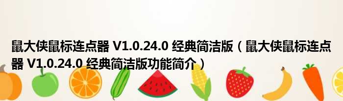 导读 大家好,关于鼠大侠鼠标连点器 V1 0 24 0 经典简洁版,鼠大侠鼠标连点器 V1 0 24 0 经典简洁版功能简介这个很多人还不知道,小勒来为大家