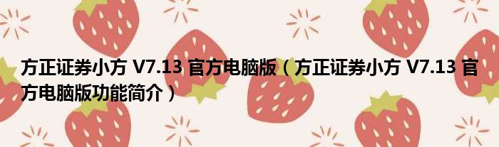 方正证券小方 V7.13 官方电脑版(方正证券小方 V7.13 官方电脑版功能简介)