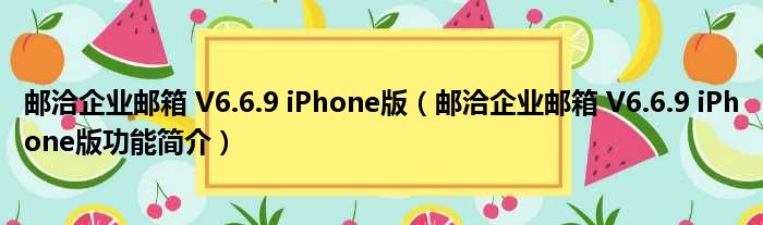 邮洽企业邮箱 V6.6.9 iPhone版(邮洽企业邮箱 V6.6.9 iPhone版功能简介)