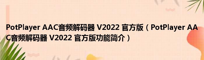 PotPlayer AAC音频解码器 V2022 官方版(PotPlayer AAC音频解码器 V2022 官方版功能简介)