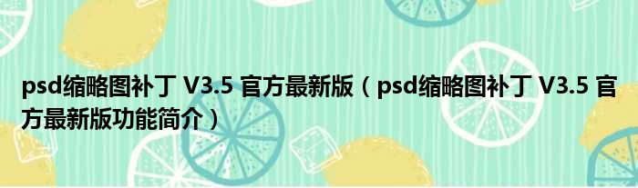 psd缩略图补丁 V3.5 官方最新版(psd缩略图补丁 V3.5 官方最新版功能简介)