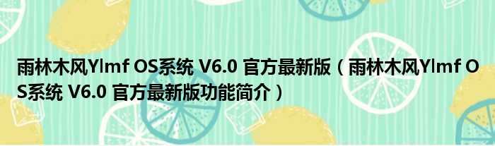 雨林木风Ylmf OS系统 V6.0 官方最新版(雨林木风Ylmf OS系统 V6.0 官方最新版功能简介)