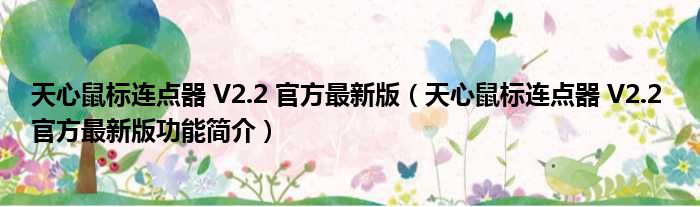 天心鼠标连点器 V2.2 官方最新版(天心鼠标连点器 V2.2 官方最新版功能简介)