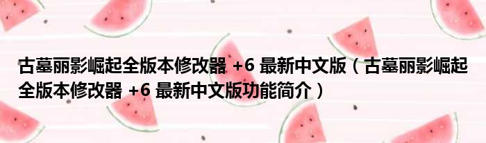 导读 大家好,关于古墓丽影崛起全版本修改器 +6 最新中文版,古墓丽影崛起全版本修改器 +6 最新中文版功能简介这个很多人还不知道,小勒来为大