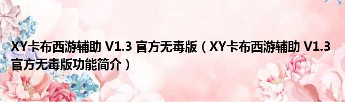 XY卡布西游辅助 V1.3 官方无毒版(XY卡布西游辅助 V1.3 官方无毒版功能简介)