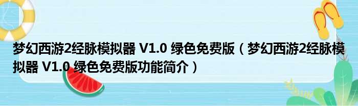 导读 大家好,关于梦幻西游2经脉模拟器 V1 0 绿色免费版,梦幻西游2经脉模拟器 V1 0 绿色免费版功能简介这个很多人还不知道,小勒来为大家解答